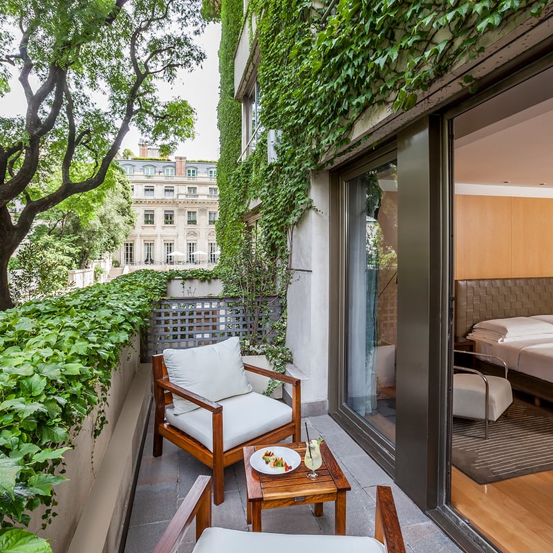 White marble cascades through this eleven-room Recoleta retreat, where modern Argentine design meets serious gastronomy—a former El Bulli chef commands the restaurant kitchen beneath an indoor tree. The all-inclusive concierge handles everything from estancia excursions to polo match tickets, while upstairs a vine-draped rooftop terrace offers rare open-air respite. Adults only, with jacuzzi and sauna for unwinding.