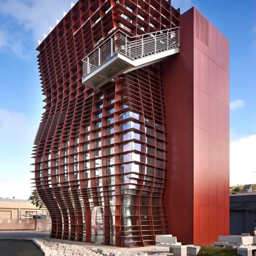 A sculptural red steel structure known as 'The Waffle' houses Jordan Kahn's two-Michelin-starred temple to avant-garde dining. The tasting menu unfolds as edible art: scallop adorned with passionfruit and ají amarillo, compositions blanketed in edible flowers and tomato water, desserts that shift through kaleidoscopic flavors. A Michelin Green Star recognizes the kitchen's zero-waste commitment across all operations.