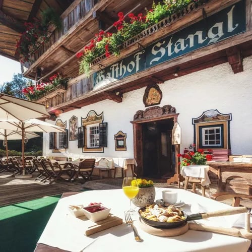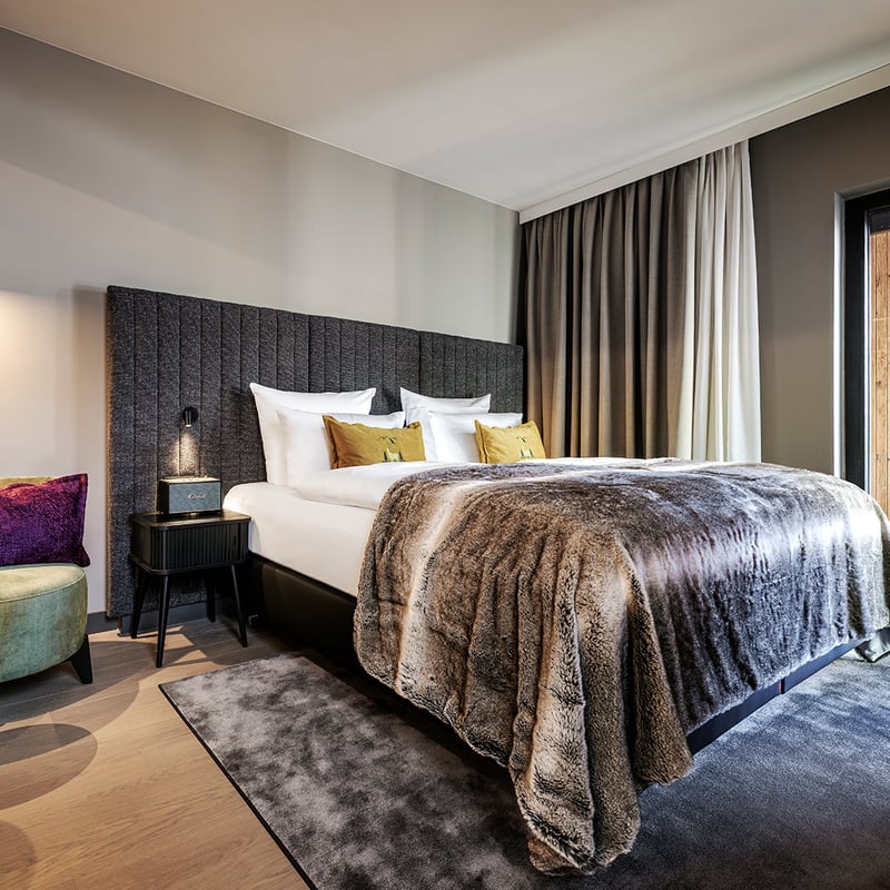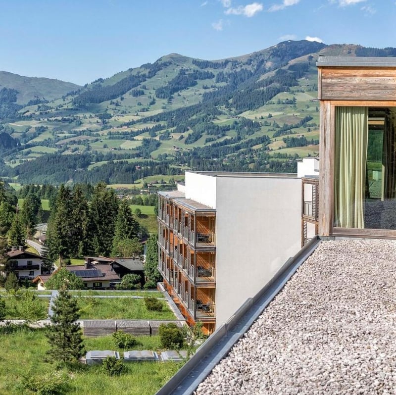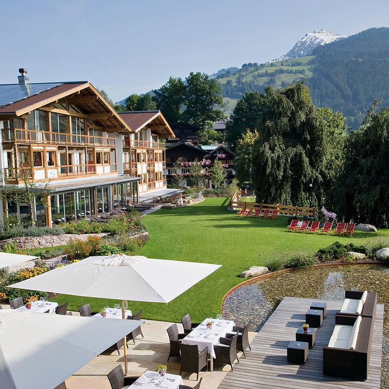 A striking departure from traditional Tyrolean chalets, this 26-room retreat channels sleek contemporary design through smoked glass and minimalist interiors. Chef-owner Simon Taxacher commands both a celebrated gourmet restaurant serving French Mediterranean cuisine and an Alpine bistro where braised beef meets rosemary gnocchi. The spa features a 15-meter indoor pool and Comfort Zone treatments, while mountain-view balconies and an outdoor pool reward guests after days exploring Kitzbühel, just fifteen minutes away.
