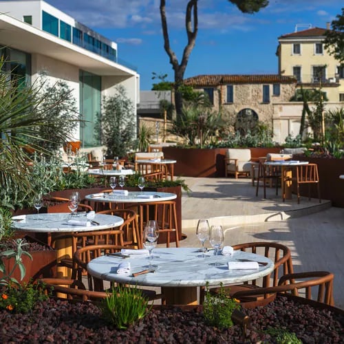 Surrounded by 17 hectares of Verchant vineyards, Marcelle occupies a light-filled contemporary dining room within a 16th-century wine domaine just outside Montpellier. The kitchen draws directly from its own cottage garden, translating seasonal produce into modern Mediterranean plates that pair naturally with estate wines. A stepped terrace offers sweeping views across the countryside—ideal for leisurely lunches rooted in terroir.