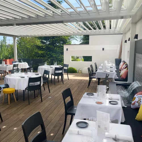 Chef Jérémy Morin earned a Michelin star at this greenery-wrapped suburban retreat, where a bioclimatic pergola shades the summer terrace. His creative modern plates—roast veal rack with sweetbread brioche and vanilla-touched artichoke, monkfish in sumac with raspberry-dressed lettuce—show technical confidence without affectation. Pastry chef Nathan Beaumont closes with a Nyangbo chocolate mousse, hazelnut ganache pooling beneath.