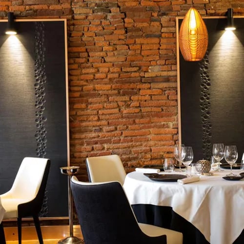 Pierre Lambinon, trained at Monaco's Louis XV and London's Dorchester, holds Toulouse's sole two-Michelin-star address in a vaulted white-brick cellar in the Carmes quarter. His modern compositions favor line-caught hake from Saint-Jean-de-Luz, Pyrenean trout gravlax with wild garlic pesto, and pigeon roasted on the carcass with black fig—each plate balancing grilled notes, garden herbs, and seasonal vegetables with acute precision. In summer, the chef decamps to Domaine de Preissac, twenty minutes outside the city.