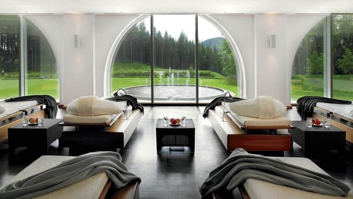 Just 30 minutes outside of the Irish capital, the Powerscourt Hotel Resort & Spa is a five-star establishment surrounded by greenery. Situated in the heart of Powerscourt Estate, a gorgeous domain with a historic building and beautiful gardens (which we of course visited), a waterfall—the highest in Ireland—and a golf course, it's the perfect place to spend a few relaxing days, with natural beauty everywhere you look.