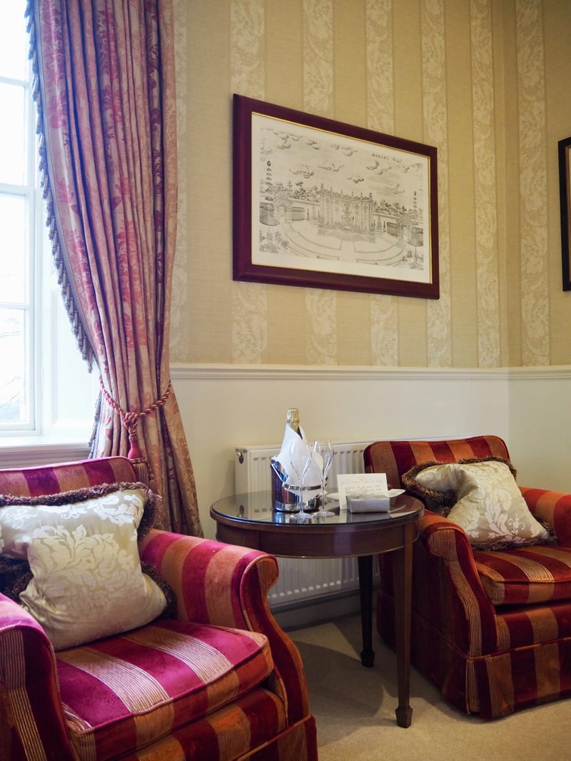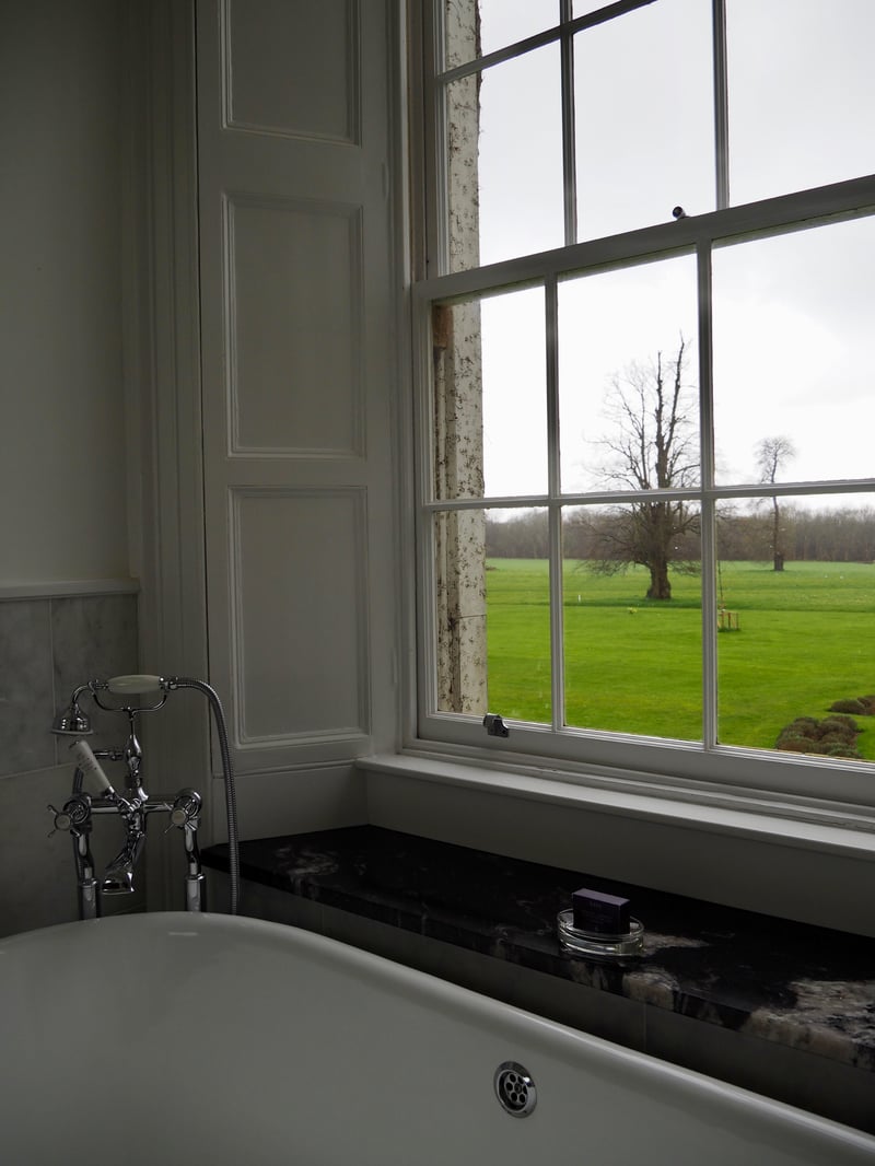 There are no fewer than 42 bedrooms and suites at Lucknam Park, and yet guests can benefit from an intimate atmosphere. We're staying in the ‘Park Room' category, which offers a magnificent view over the park (even from the perspective of the clawfoot bathtub standing in the marble bathroom). The room shares the same look as the building – elegant and ‘old-school.' Floral-patterned upholstery, enormous furniture, deep armchairs, thick curtains… A cozy little nook beckons guests to lounge around with a good book, but I must say that I prefer to do my reading in one of the splendid sitting rooms on the ground floor.