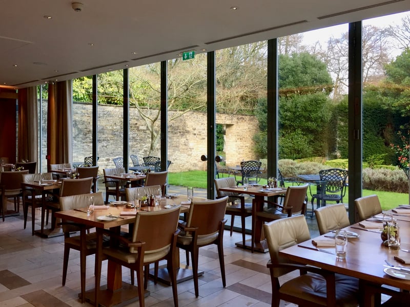 In the evening, we can either dine at Hywel Jones' starred restaurant, or go for the more informal cuisine of the Brasserie; we decide on the latter. This relaxed restaurant proposes seasonal cuisine in a modern setting, featuring large glass doors and trendy furniture. It's easy to imagine how lovely it would be to eat lunch or dinner here in the summer, with the patio doors open and the tables facing the dovecote – pure bliss!